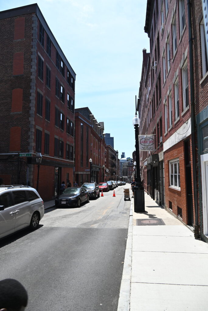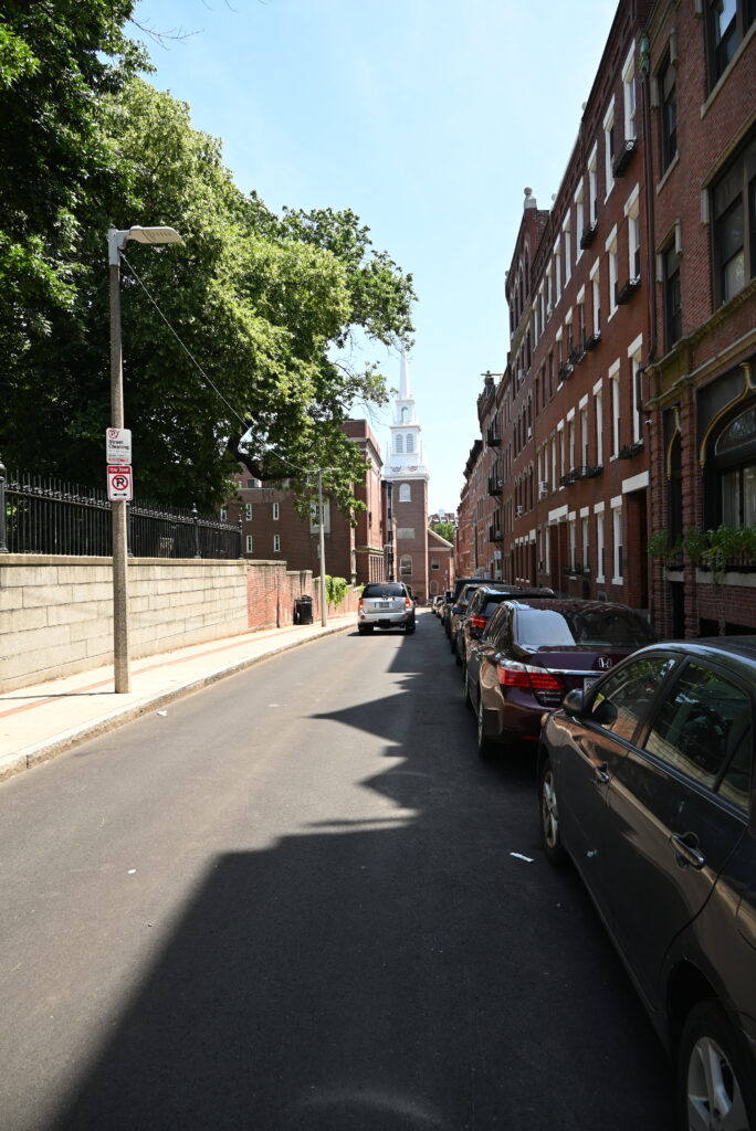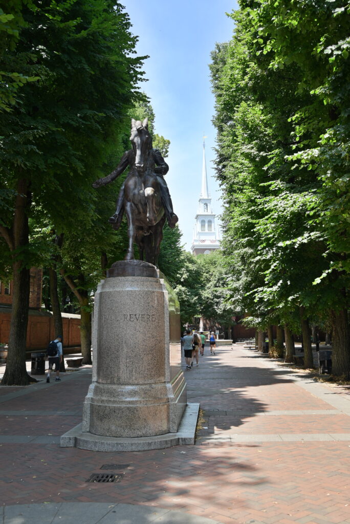 Der Freedom Trail ist 7km lang, aber die meisten Amis beenden den Trail schon nach gut 2,5km (das sind sehr viel Fuß). Dies merkten wir, da die Menschenmassen nur zwischen Beginn und der ersten Foodhall waren. Während wir dahin spazierten bestaunten wir die Monumente und waren fasziniert, wie aus so einer kurzen Geschichte so viel herausgeholt werden kann, wobei das meiste recht aufgeblasen wirkte. Denn jeder Friedhof, der an derselben Stelle wie damals ist und jedes Haus, das noch steht, hat zum Freedom beigetragen, und dann gab es da noch einen Platz da soll ein Massaker stattgefunden haben (das war maßgeblich für die Boston Tea Party, so wie die Schlacht am Hügel, das Haus im Zentrum, die Kirche daneben, der Schulhof der Schule, die nicht mehr steht und das Gebäude welches man 20 Jahre später erbaut hat). Nach kurzer Recherche fanden wir jedoch heraus das die Bezeichnung Massaker, mit den fünf Toten wohl eher der amerikanischen Übertreibung entspringt.