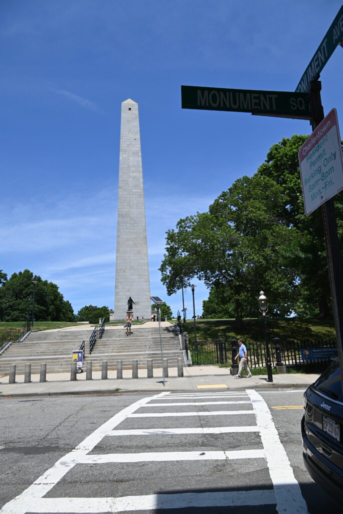 Jedoch richtig (schön) Amerikanisch fanden wir den geschichtsträchtigen Corner-Bookstore, der hat nicht nur zum Freedom beigetragen, sondern vor lauter Freedom ist da jetzt auch der Chipotle Mexican Grill drinnen. Mexikanisches Fastfood scheint bei so viel Freiheit wichtiger als Bücher. Im Hafen sahen wir dann das älteste Schiff Amerikas (aber limitiert auf die noch schwimmenden Schiffe UND das vom Militär betreut wird). Beeindruckt davon, dass es irgendwo in Amerika ein älteres Schiff geben muss, das noch schwimmt, aber nicht dem Militär gehört, gingen wir weiter zum Obelisken auf dem Hügel, auf dem eine andere wichtigste Schlacht stattgefunden hat. Dann war der Freedom Trail auch schon zu Ende und unser Fazit am Schluss war, Boston wäre ja ganz schön wenn da nicht die ganzen Autos wären.