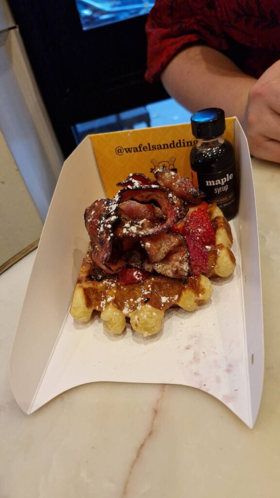 Bevor wir uns alte Knochen und tote Tiere im American Museum of Natural History anschauten, haben wir uns noch eine Waffel und einen Kaffee gegönnt. Und wieder vergaßen wir beim Bestellen, Kaffee ist nicht gleich Kaffee. Jedoch konnte die Waffel mit Ahornsirup und Speck dies auf jeden Fall wettmachen.
