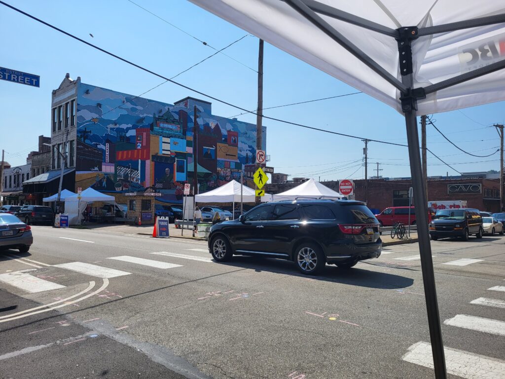 Nach dem Essen gab Kai ein Stück von Johann Sebastian Bach (wir vermuten Minuet in G major, BWV Anh 114) auf dem Flügel der Taverne zum Besten. Jason zeigte uns bei der Fahrt nach Pittsburgh die Scenic Route. Gleich zu Beginn sahen wir auf der Route sehr viele Rehe auf der Seite stehen – laut Jasons mehr als gewöhnlich. Während wir dem Familienauto folgten, sahen wir immer wieder Jasons Hand wie er wieder auf verschiedene Orte deutete und uns auf Sachen aufmerksam machte. Unsere Route kreuzte auch ein Stadtfest mit Fahrgeschäften und Alien-Ballons.