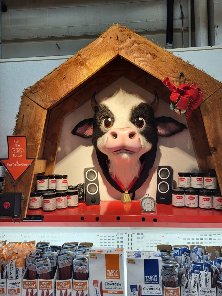 Nachdem Essen begleitet wir Jason durch verschiedene Shops mit enormer Vielfalt und Unterhaltung; wie zum Beispiel ein singender Kuhkopf oder großartige Headlines.