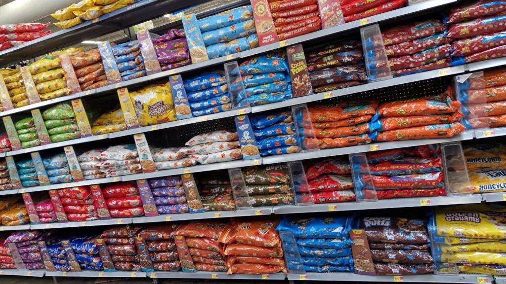 Wir beschlossen direkt aus der Stadt rauszufahren und unterwegs einen Frühstücks/Mittagsessenstop zu machen. Wie richtige Touristen besuchten wir dann auch einen Walmart und waren recht beeindruckt von den Säcken mit den Frühstücksflocken.
